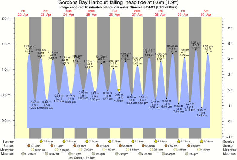 Forecast wind and swell just offshore from Gordons Bay Harbour around the time the photo was taken