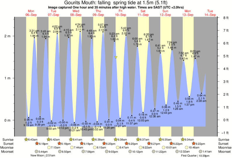 Image captured One hour and 35 minutes after high water (falling spring tide). Tide height was 1.5m (5.1 ft). Range 2.37m (7.8 ft). Toggle tide graph