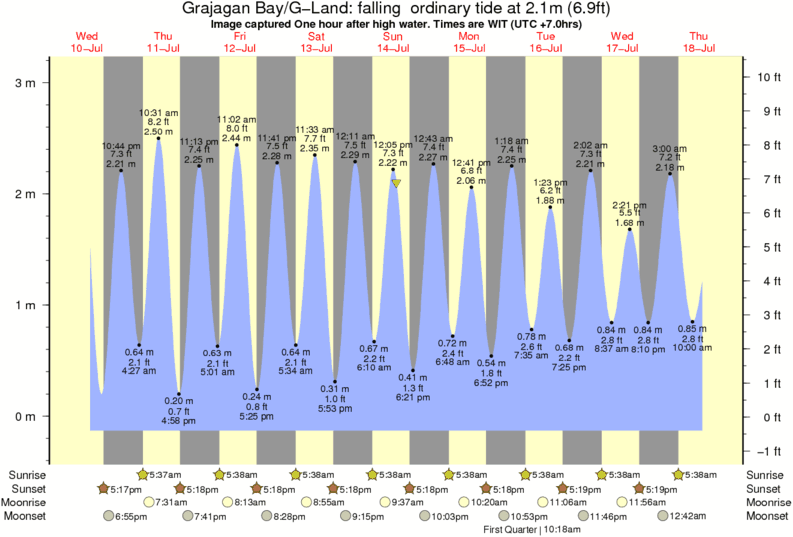 Image captured One hour after high water (falling ordinary tide). Tide height was 2.1m (6.9 ft). Range 3.06m (10.0 ft). Toggle tide graph