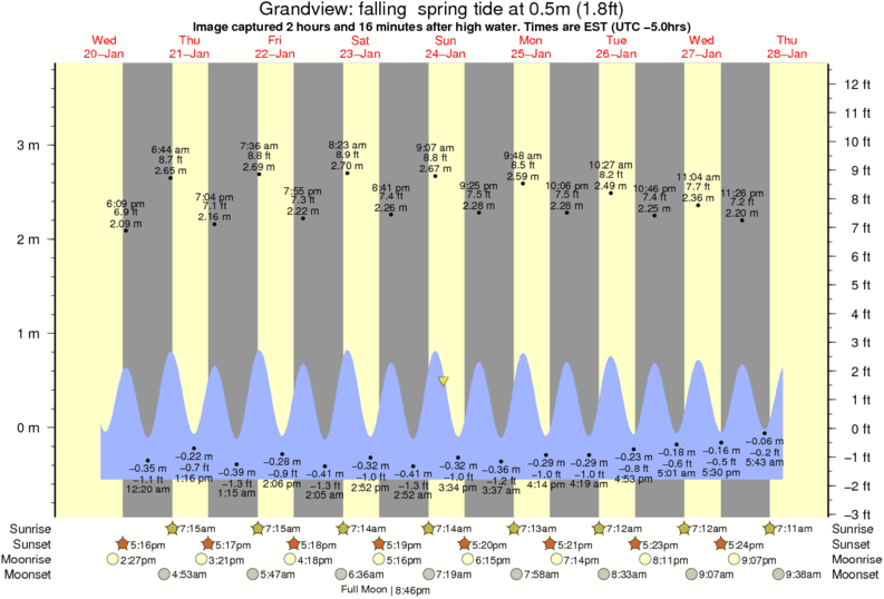 Image captured 2 hours and 16 minutes after high water (falling spring tide). Tide height was 0.5m (1.8 ft). Range 4.02m (13.2 ft). Toggle tide graph