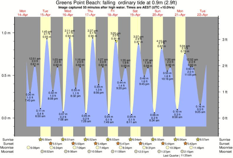Image captured 55 minutes after high water (falling ordinary tide). Tide height was 0.9m (2.9 ft). Range 1.17m (3.8 ft). Toggle tide graph