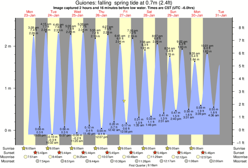 Image captured 2 hours and 16 minutes before low water (falling spring tide). Tide height was 0.7m (2.4 ft). Range 2.52m (8.3 ft). Toggle tide graph