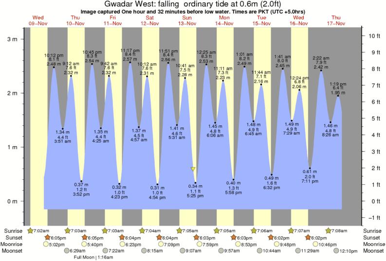 Forecast wind and swell just offshore from Gwadar West around the time the photo was taken