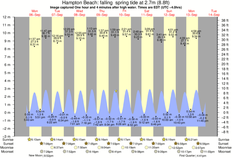 Image captured One hour and 4 minutes after high water (falling spring tide). Tide height was 2.7m (8.8 ft). Range 12.53m (41.1 ft). Toggle tide graph