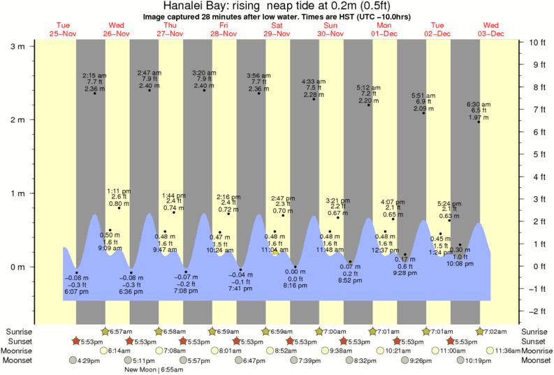 Forecast wind and swell just offshore from Hanalei Bay around the time the photo was taken