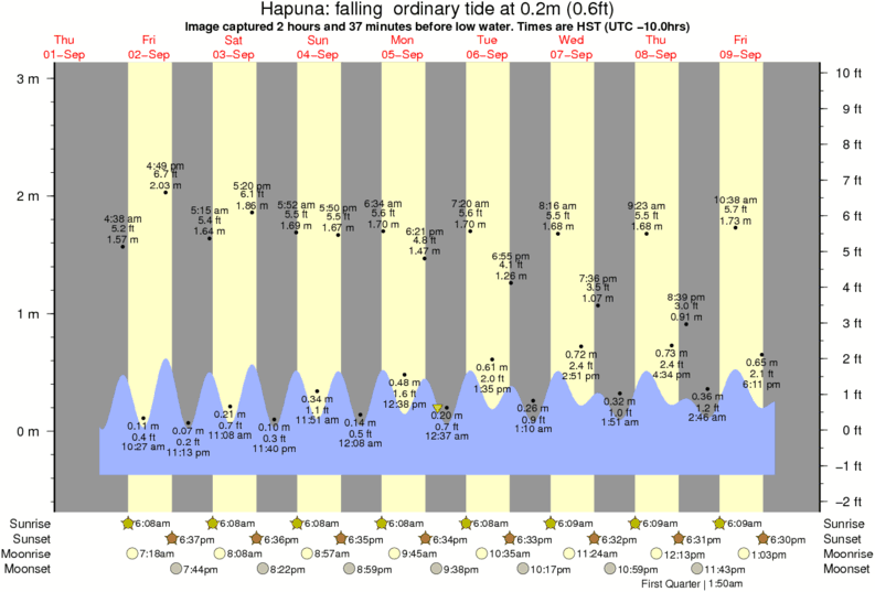 Image captured 2 hours and 37 minutes before low water (falling ordinary tide). Tide height was 0.2m (0.6 ft). Range 3.19m (10.5 ft). Toggle tide graph