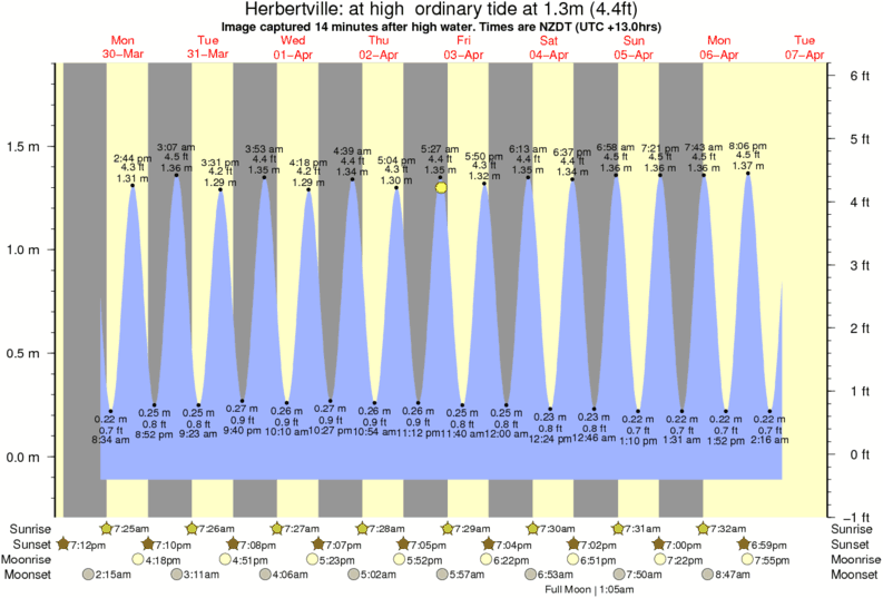 Image captured 14 minutes after high water (at high ordinary tide). Tide height was 1.3m (4.4 ft). Range 1.83m (6.0 ft). Toggle tide graph