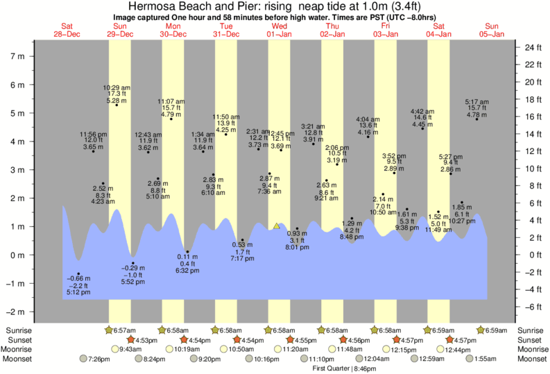 Forecast wind and swell just offshore from Hermosa Beach and Pier around the time the photo was taken