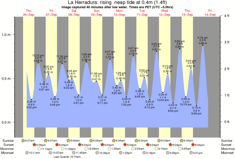Image captured 40 minutes after low water (rising neap tide). Tide height was 0.4m (1.4 ft). Range 1.15m (3.8 ft). Toggle tide graph