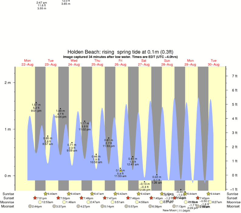 Forecast wind and swell just offshore from Holden Beach around the time the photo was taken