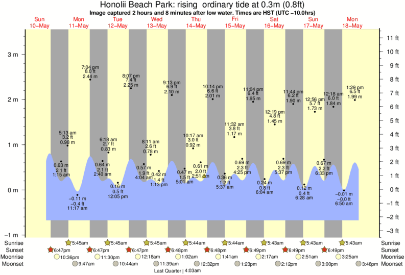 Forecast wind and swell just offshore from Honolii Beach Park around the time the photo was taken