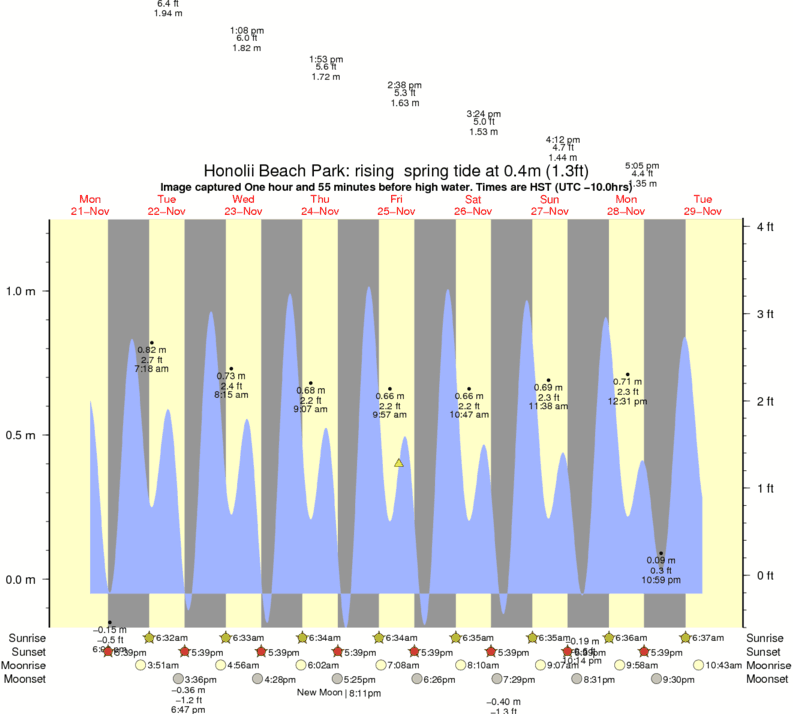 Forecast wind and swell just offshore from Honolii Beach Park around the time the photo was taken