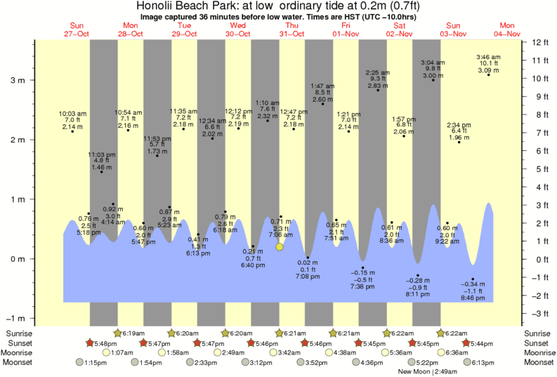 Forecast wind and swell just offshore from Honolii Beach Park around the time the photo was taken