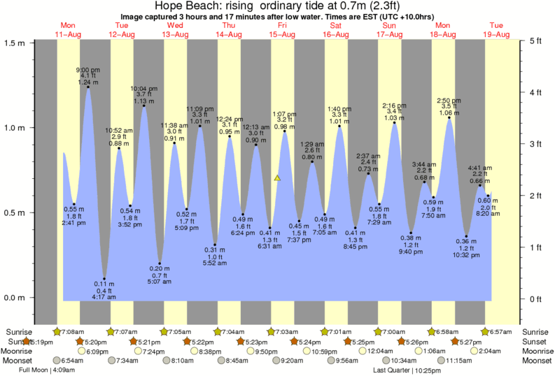 Forecast wind and swell just offshore from Hope Beach around the time the photo was taken