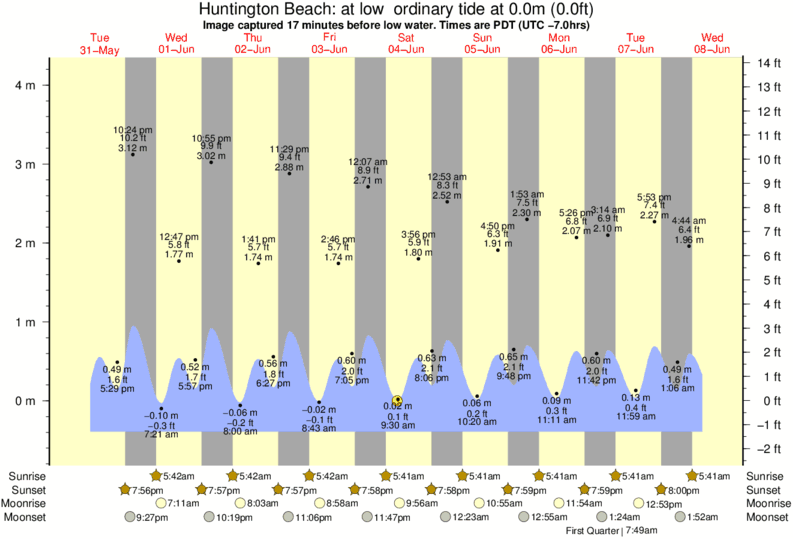 Forecast wind and swell just offshore from Huntington Beach around the time the photo was taken