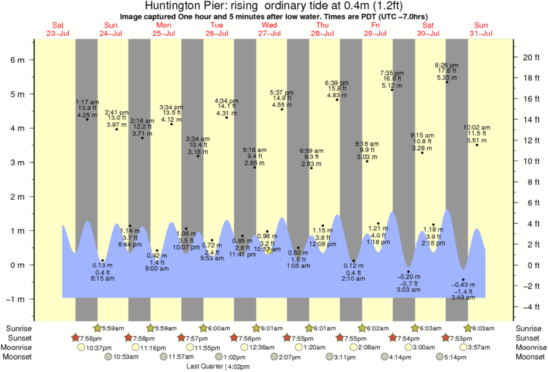 Forecast wind and swell just offshore from Huntington Pier around the time the photo was taken