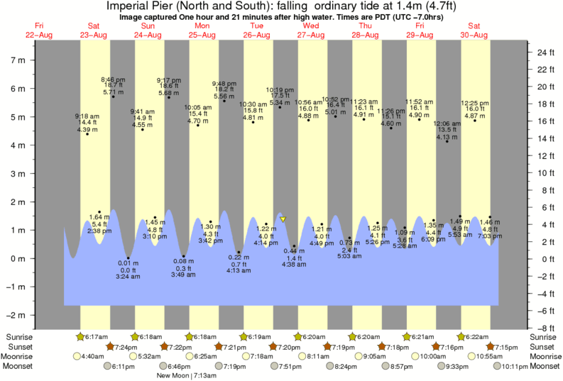 Forecast wind and swell just offshore from Imperial Pier (North and South) around the time the photo was taken