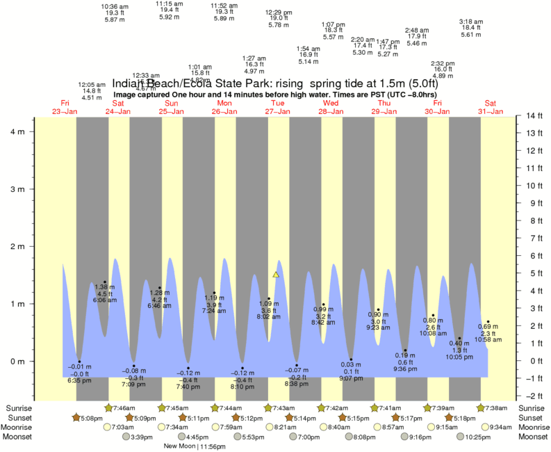 Forecast wind and swell just offshore from Indian Beach/Ecola State Park around the time the photo was taken