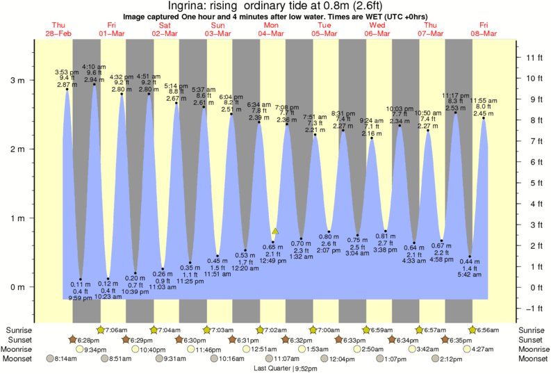 Image captured One hour and 4 minutes after low water (rising ordinary tide). Tide height was 0.8m (2.6 ft). Range 3.43m (11.3 ft). Toggle tide graph
