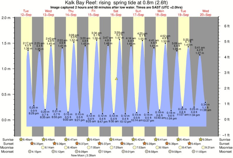 Forecast wind and swell just offshore from Kalk Bay Reef around the time the photo was taken