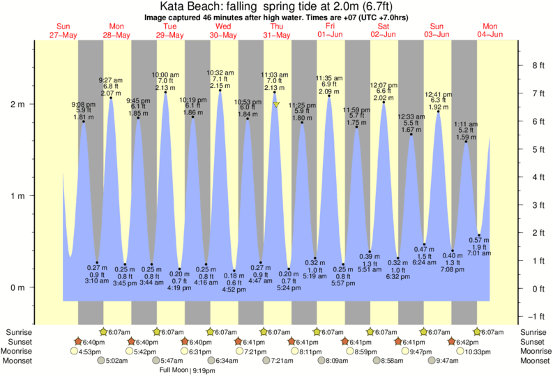 Forecast wind and swell just offshore from Kata Beach around the time the photo was taken