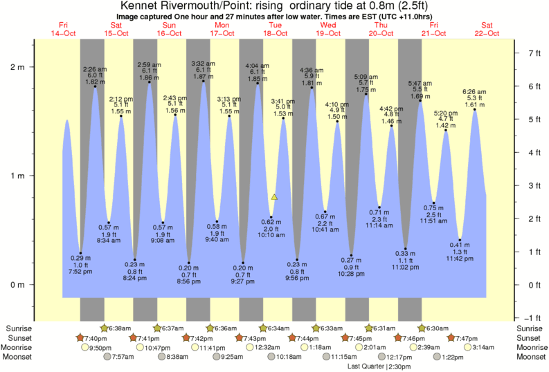 Forecast wind and swell just offshore from Kennet Rivermouth/Point around the time the photo was taken