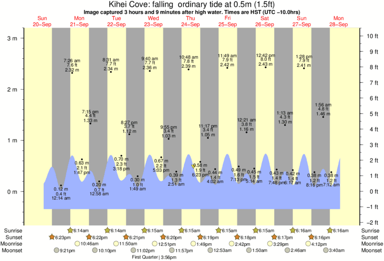 Forecast wind and swell just offshore from Kihei Cove around the time the photo was taken