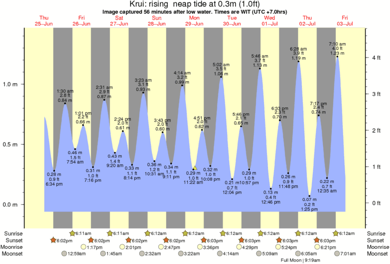 Image captured 56 minutes after low water (rising neap tide). Tide height was 0.3m (1.0 ft). Range 1.39m (4.6 ft). Toggle tide graph