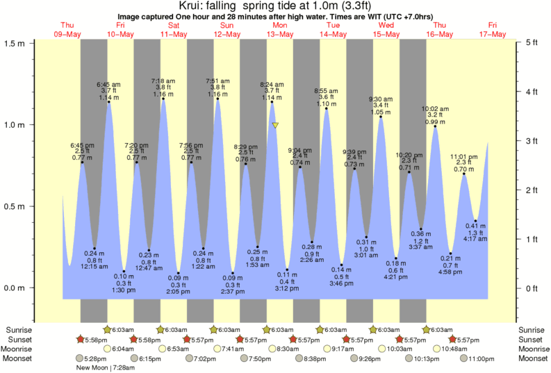 Image captured One hour and 28 minutes after high water (falling spring tide). Tide height was 1.0m (3.3 ft). Range 1.45m (4.8 ft). Toggle tide graph