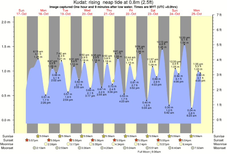 Image captured One hour and 9 minutes after low water (rising neap tide). Tide height was 0.8m (2.5 ft). Range 1.99m (6.5 ft). Toggle tide graph