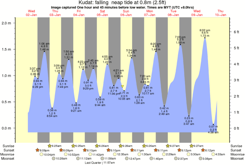 Image captured One hour and 45 minutes before low water (falling neap tide). Tide height was 0.8m (2.5 ft). Range 1.99m (6.5 ft). Toggle tide graph