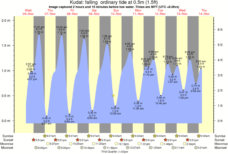 Image captured 2 hours and 15 minutes before low water (falling ordinary tide). Tide height was 0.5m (1.5 ft). Range 1.94m (6.4 ft). Toggle tide graph