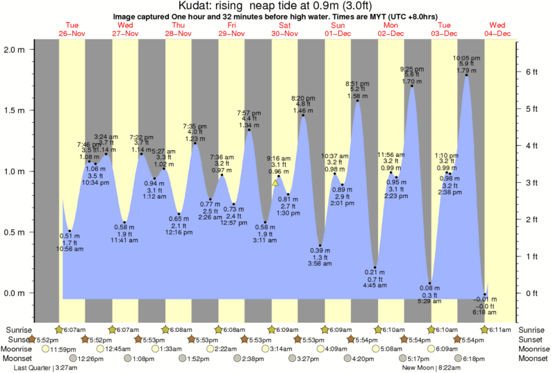 Image captured One hour and 32 minutes before high water (rising neap tide). Tide height was 0.9m (3.0 ft). Range 1.94m (6.4 ft). Toggle tide graph