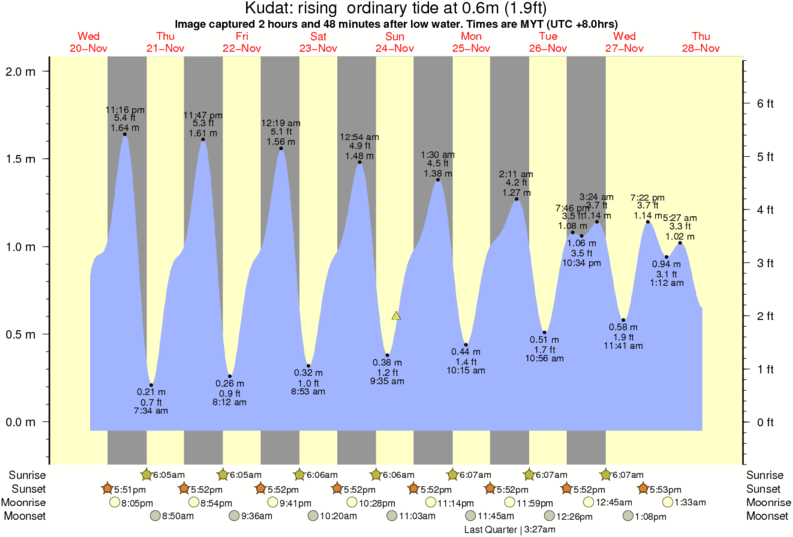 Image captured 2 hours and 48 minutes after low water (rising ordinary tide). Tide height was 0.6m (1.9 ft). Range 1.94m (6.4 ft). Toggle tide graph