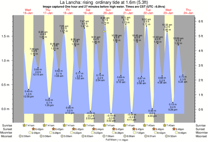 Forecast wind and swell just offshore from La Lancha around the time the photo was taken