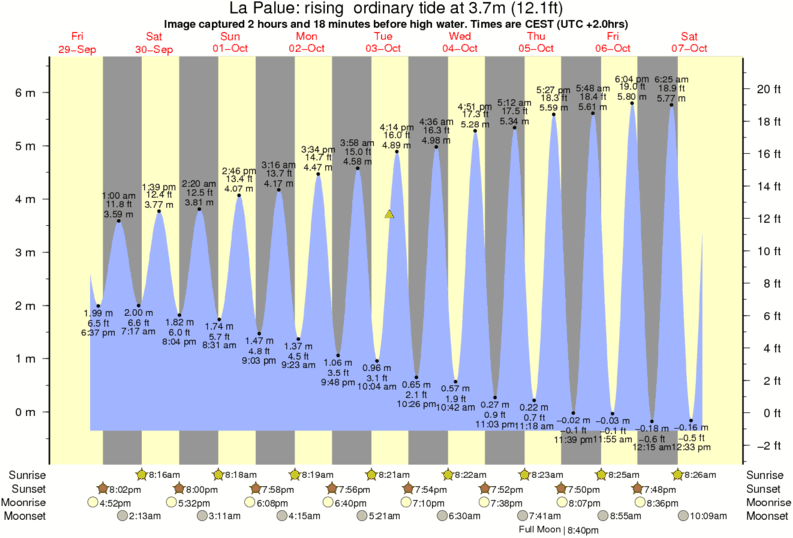 Image captured 2 hours and 18 minutes before high water (rising ordinary tide). Tide height was 3.7m (12.1 ft). Range 6.39m (21.0 ft). Toggle tide graph