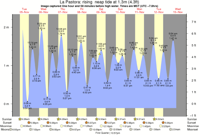 Image captured One hour and 58 minutes before high water (rising neap tide). Tide height was 1.3m (4.3 ft). Range 2.23m (7.3 ft). Toggle tide graph