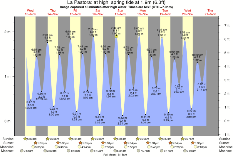 Image captured 18 minutes after high water (at high spring tide). Tide height was 1.9m (6.3 ft). Range 2.23m (7.3 ft). Toggle tide graph