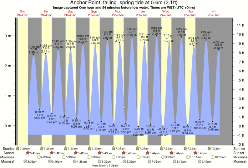 Image captured One hour and 54 minutes before low water (falling spring tide). Tide height was 0.6m (2.1 ft). Range 3.55m (11.6 ft). Toggle tide graph