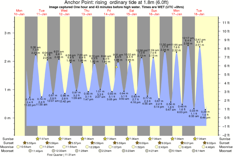 Image captured One hour and 43 minutes before high water (rising ordinary tide). Tide height was 1.8m (6.0 ft). Range 3.51m (11.5 ft). Toggle tide graph