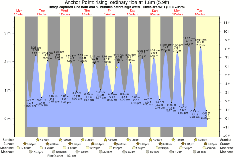 Image captured One hour and 50 minutes before high water (rising ordinary tide). Tide height was 1.8m (5.9 ft). Range 3.51m (11.5 ft). Toggle tide graph