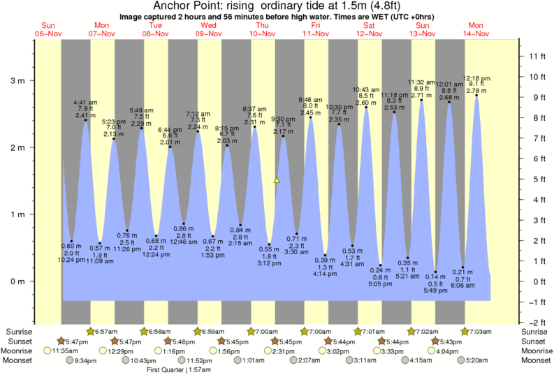 Image captured 2 hours and 56 minutes before high water (rising ordinary tide). Tide height was 1.5m (4.8 ft). Range 3.55m (11.6 ft). Toggle tide graph