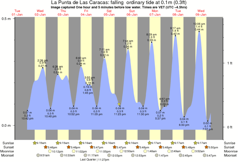 Forecast wind and swell just offshore from La Punta de Las Caracas around the time the photo was taken