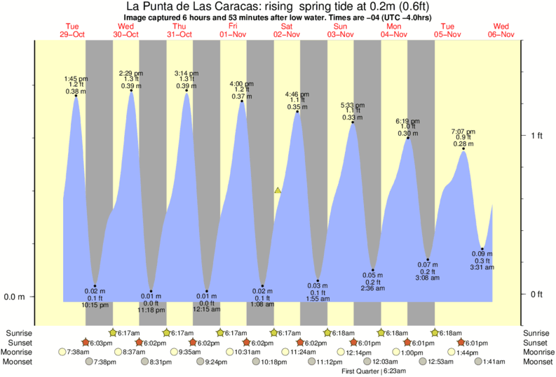 Forecast wind and swell just offshore from La Punta de Las Caracas around the time the photo was taken
