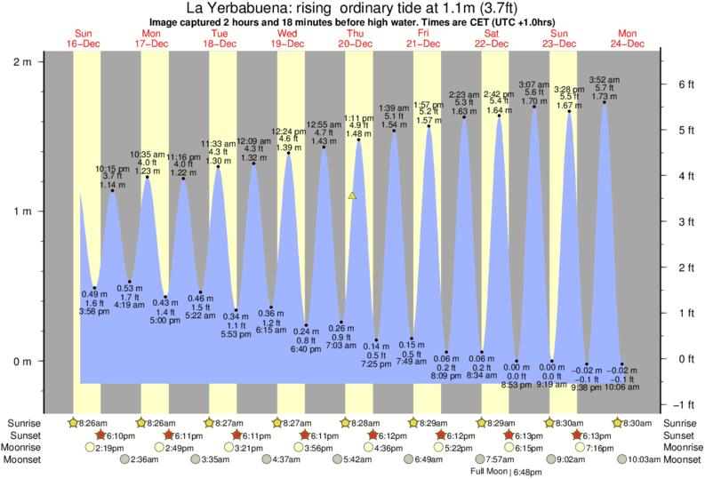 Forecast wind and swell just offshore from La Yerbabuena around the time the photo was taken