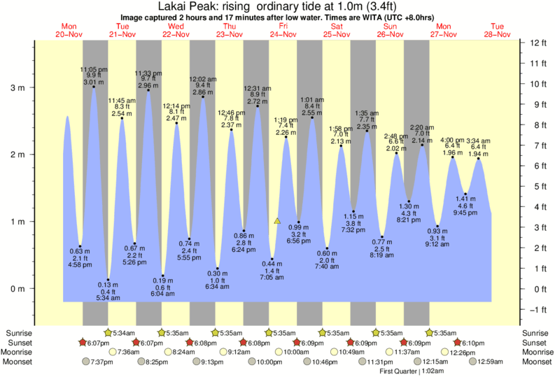 Image captured 2 hours and 17 minutes after low water (rising ordinary tide). Tide height was 1.0m (3.4 ft). Range 3.55m (11.6 ft). Toggle tide graph