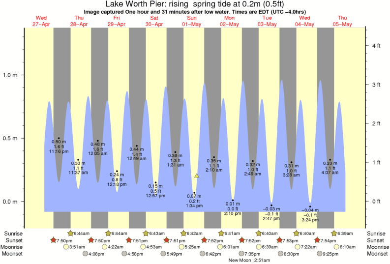 Forecast wind and swell just offshore from Lake Worth Pier around the time the photo was taken