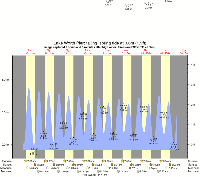 Forecast wind and swell just offshore from Lake Worth Pier around the time the photo was taken