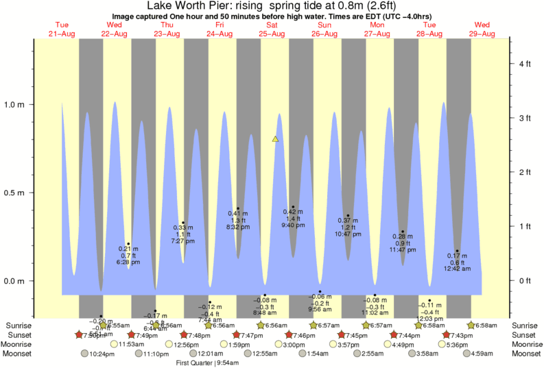 Forecast wind and swell just offshore from Lake Worth Pier around the time the photo was taken