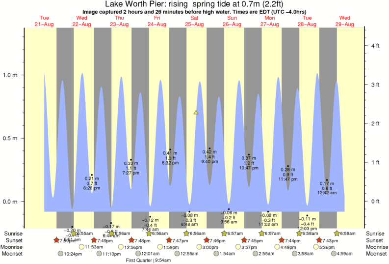 Forecast wind and swell just offshore from Lake Worth Pier around the time the photo was taken